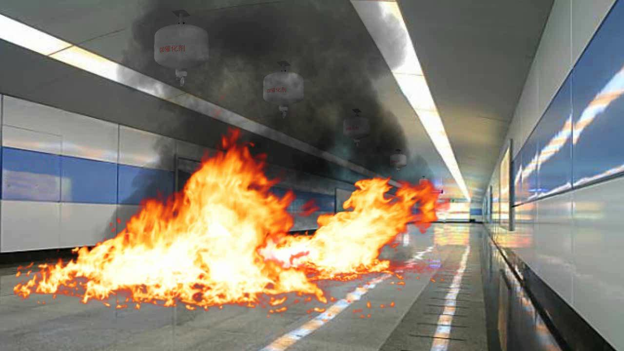 基于表面吸附和催化氧化原理,提出一種噴灑式CO消除方法:火 災爆炸瞬間將高活性的CO消除劑粉末噴灑到空氣中,形...
