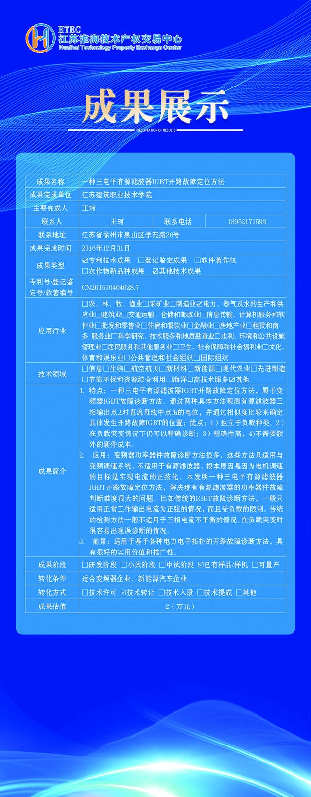 Copyright ? 2017-2020江蘇淮海技術(shù)產(chǎn)權交易中心有限公司 備案號:蘇ICP備17066477號-1
