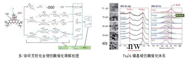 3、“基于納米磁性Fe3O4/ 煤基碳仿酶催 化體系”酚氰廢氨水梯級再生循環(huán)技術(shù)。針對 酚氰廢氨水是由氨及其鹽所組成的龐大的緩沖 體系,富含難以降解的喹啉類(lèi)、多/雜環(huán)芳烴 類(lèi)化合物,現有單一生化技術(shù)極難再生循環(huán)利 用。首次提出降低緩沖容量,以提高處理效率 的基本原理,構筑納米 Fe3O4/ 煤基碳仿酶催 化體系,研發(fā)出酚氰廢氨水梯級再生循環(huán)技 術(shù),成本大幅降低30%。