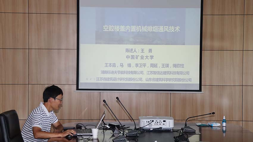 中國礦業(yè)大學(xué)力學(xué)與土木工程學(xué)院王勇副教授詳細介紹了其專(zhuān)利成果——“空腔樓蓋內置機械排煙通風(fēng)技術(shù)”,并就技術(shù)測試階段成果、示范工程應用等情況進(jìn)行了講解。