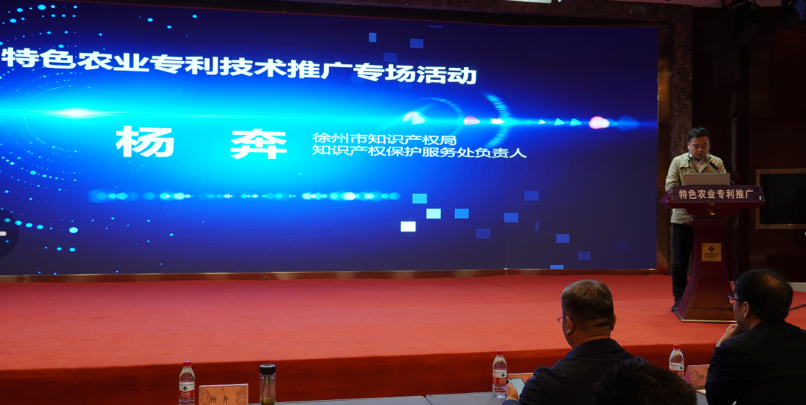 4月26日,特色農業(yè)專(zhuān)利技術(shù)推廣專(zhuān)場(chǎng)對接活動(dòng)在邳州天鴻金陵大酒店五樓天鴻廳成功舉辦,徐州市知識產(chǎn)權局保護服務(wù)處處長(cháng)楊奔、徐州市農科院副院長(cháng)楊峰、邳州市市場(chǎng)監管局副局長(cháng)韓洪峰出席,楊奔、韓洪峰分別致辭。