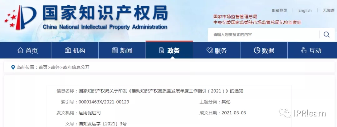 推動(dòng)知識產(chǎn)權高質(zhì)量發(fā)展年度工作指引(2021)