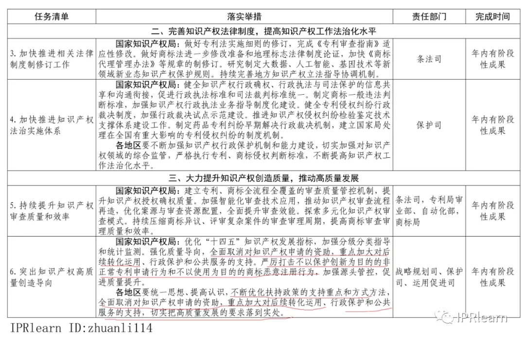 2021年推動(dòng)知識產(chǎn)權高質(zhì)量發(fā)展任務(wù)清單